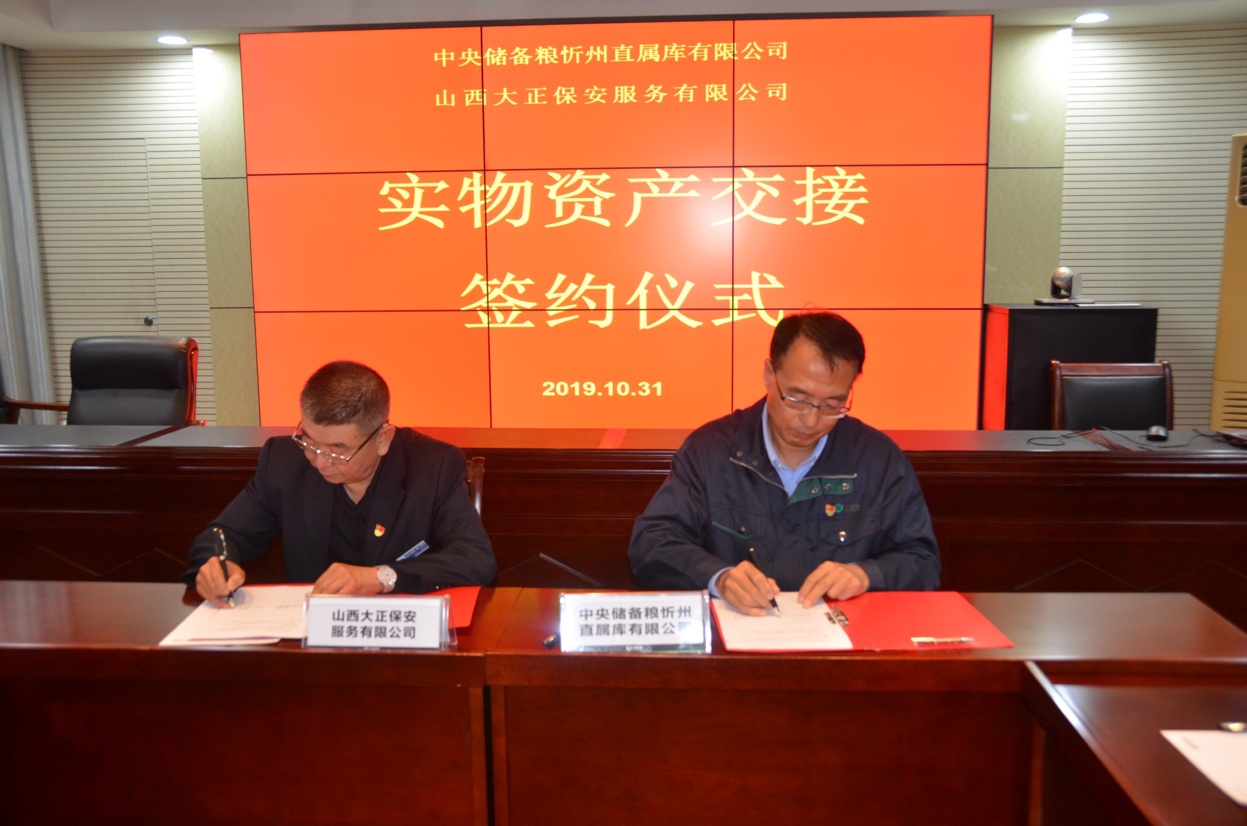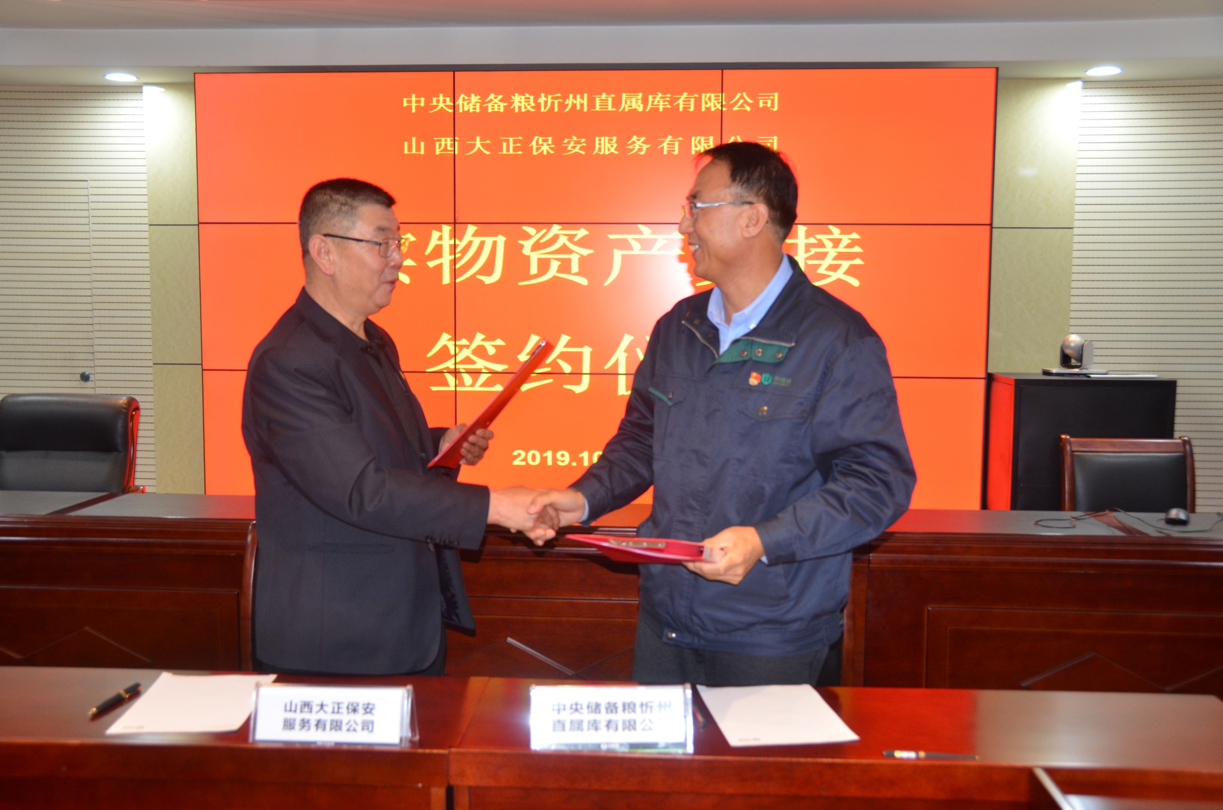 10月31日,山西大正保安服務(集團)有限公司與中儲糧忻州直屬庫有限公司在中儲糧忻州直屬庫有限公司會議室簽署資產(chǎn)交接協(xié)議,正式交接中儲糧忻州直屬庫有限公司轉(zhuǎn)讓的原紅鑫淀粉廠項目土地、建筑等資產(chǎn)。
