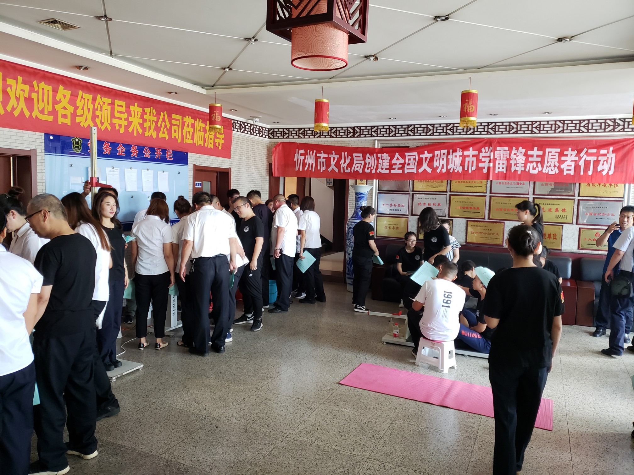 2018年7月20日忻州市文化局創(chuàng)建全國(guó)文明城市學(xué)雷鋒志愿者來到公司為公司員工開展了一次全面的體質(zhì)監(jiān)測(cè)活動(dòng),此次體質(zhì)監(jiān)測(cè)是為了響應(yīng)國(guó)家提出健康中國(guó)2030戰(zhàn)略布局,引導(dǎo)員工科學(xué)進(jìn)行體育運(yùn)動(dòng)合理安排膳食結(jié)構(gòu)的一次無償監(jiān)測(cè)服務(wù)。