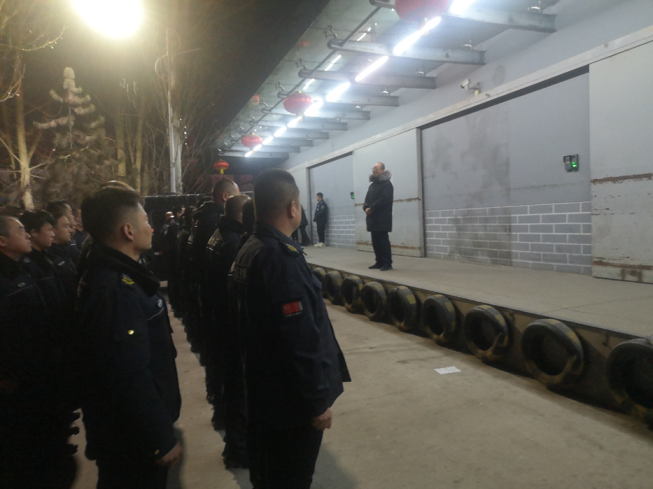 在中心庫(kù)駐地全體隊(duì)員集合完畢后,集團(tuán)公司黨委委員、副總經(jīng)理王明生作了簡(jiǎn)短的講話,他代表公司向奮戰(zhàn)在一線的守押隊(duì)員表示衷心感謝和新年的誠(chéng)摯問(wèn)候,他指出,一年來(lái),全體守押隊(duì)員盡職盡責(zé),擔(dān)當(dāng)作為,風(fēng)雨無(wú)阻,寒冷不懼,始終如一,辛勤付出,圓滿完成公司的各項(xiàng)工作任務(wù),為公司的安全穩(wěn)定發(fā)展作出了應(yīng)有的貢獻(xiàn),取得了良好效益和驕人業(yè)績(jī),得到了領(lǐng)導(dǎo)的贊揚(yáng)和大家的認(rèn)可。他強(qiáng)調(diào),在新的一年,希望全體守押?jiǎn)T工,不忘公司重托,不負(fù)領(lǐng)導(dǎo)期望,認(rèn)真履職盡責(zé),忠誠(chéng)擔(dān)當(dāng)作為,堅(jiān)守初心,敬業(yè)奉獻(xiàn),團(tuán)結(jié)奮進(jìn),繼續(xù)努力,為公司的高質(zhì)量發(fā)展再立新功!
